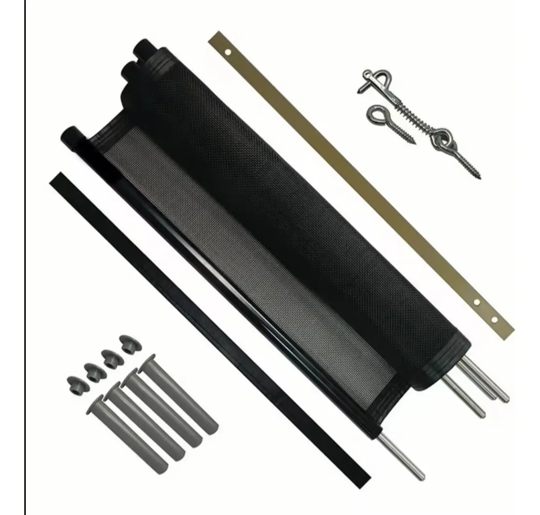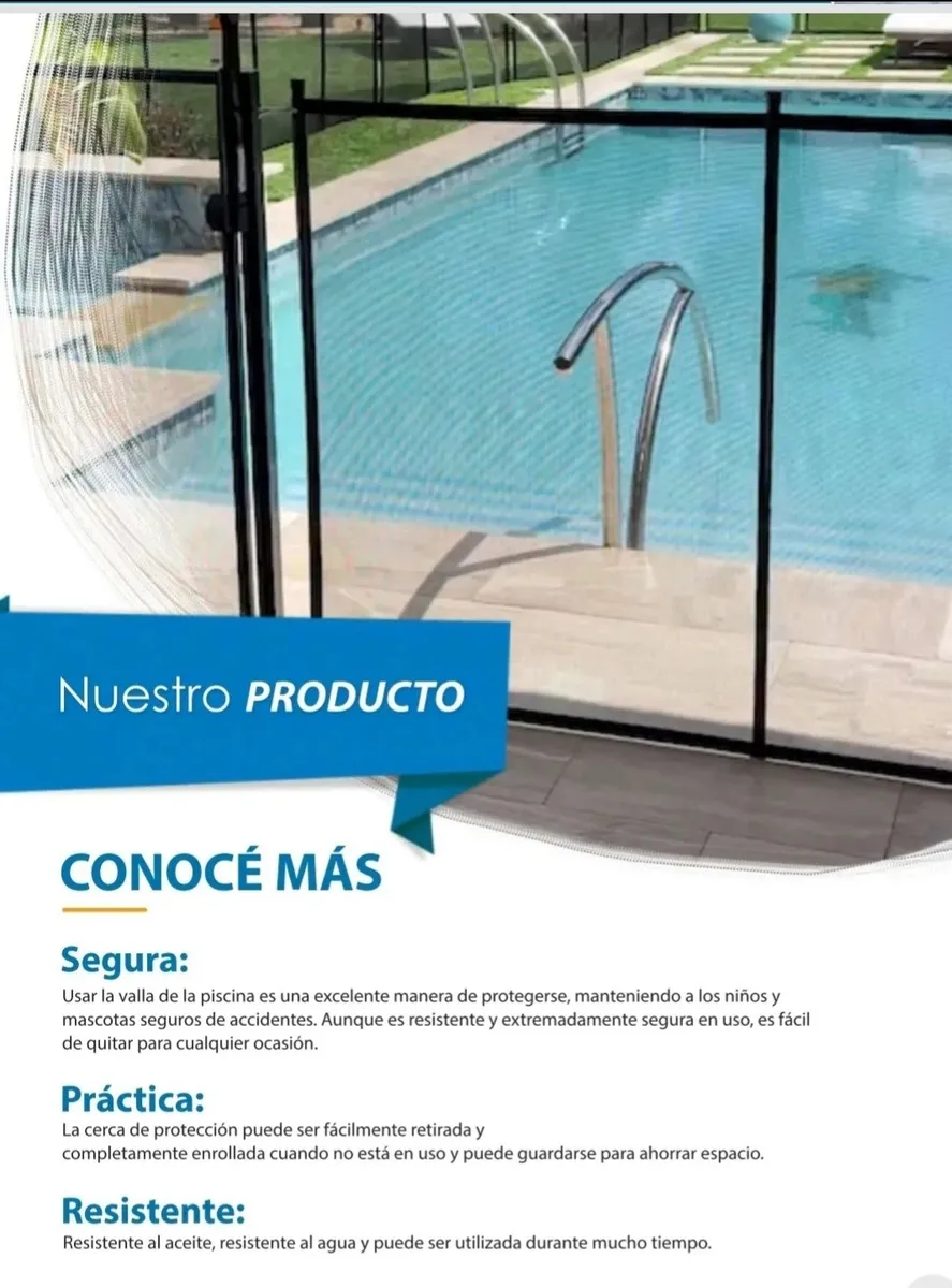 Cerco de protección perimetral, manteniendo a los niños y mascotas libres de accidentes. Paños de 3,6 mt lineales y 1,28 mts de altura. Material textilina negra resistente al sol y las inclemencias del clima.