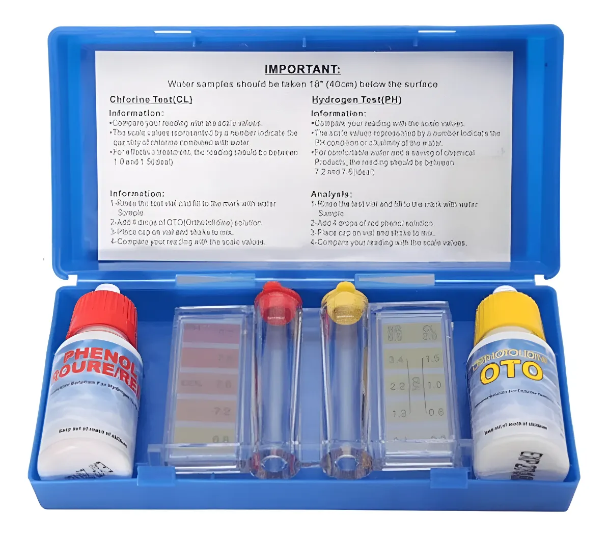 Kit medidor de PH AQUA- Cloro libre y Bromo La escala va de 6.8 a 8.2 para PH Cloro libre de 0.2 a 3.0 Bromo de 0.4 a 6.5
